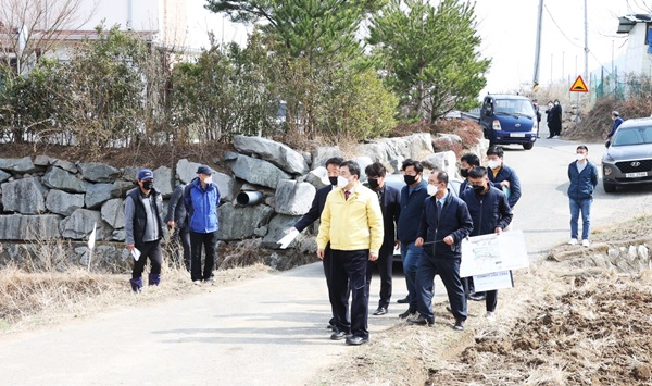 이번 행사는 감염병 예방을 위해 매년 진행되던 ‘시민과의 대화’가 무기한 연기됨에 따라 마련됐다. 이날 현장 방문에는 박승직 도의원, 김동해 시의원, 김상도 시의원을 비롯, 비록 제한된 인원이었지만 이·통장 등 주민 대표 일부가 참석했다.