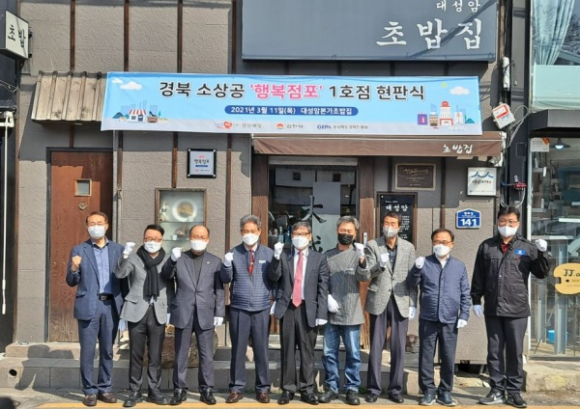 오전에는 도내 소상공 행복점포 육성사업에 선정된 32개 대표 소상공 점포 중 최초 1호점인 김천 대성암 본가 초밥에서‘행복점포 1호점’ 인증서 수여 및 현판식을 가졌다.