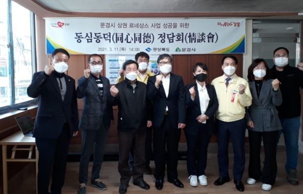 오후에는 민생경제의 최일선에 있는 전통시장의 생생한 목소리를 듣고자 문경 중앙시장으로 자리를 옮겨 상인회장, 청년상인 등이 참여한 가운데 상권 르네상스(활성화) 사업의 성공과 전통시장 청년몰 활성화를 주제로 추진현황과 우수사례를 듣고, 함께 나아가야 할 방향에 대해 의견을 교환하는 동심동덕(同心同德, 같은 목표를 위해 다같이 힘씀) 정담회(情談會)를 개최하고 문경 중앙시장과 점촌역 일원 상권 르네상스 사업현장을 직접 점검하는 시간도 가졌다.
