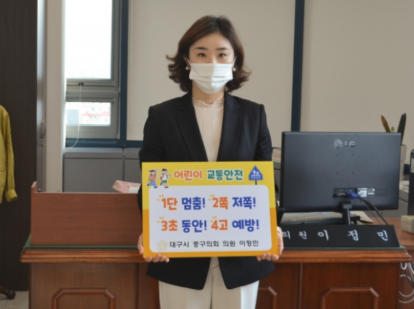 대구 중구의회 이정민의원은 지난 11일 어린이 교통안전 문화정착을 위한 ‘어린이 교통안전 챌린지’에 동참했다.