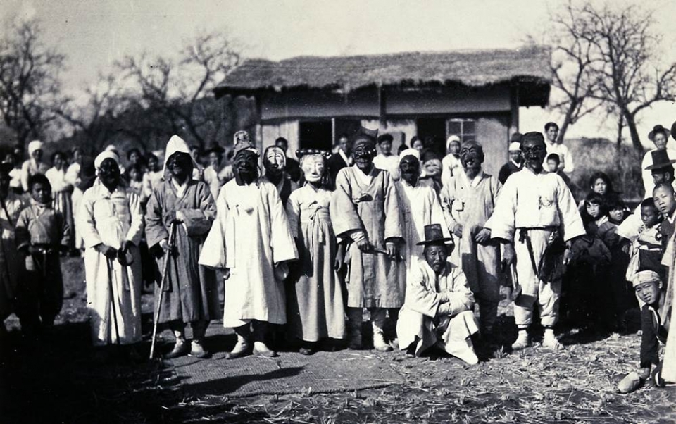 1939년 12월 송석하 선생이 촬영한 '하회별신굿탈놀이' (공연 후 기념 촬영)
