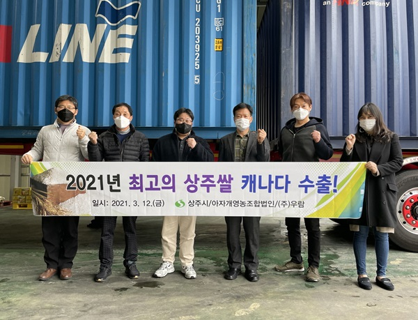 아자개영농조합법인(대표 정태식)은 지난 3월 12일 회원 농가 및 수출업체 이비스코리아, 수출 관계자가 참석한 가운데 상주쌀을 캐나다로 수출했다.