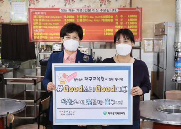 강은희 대구시교육감은 3월 15일(월) 지역 음식점에서 코로나19로 인해 어려움을 겪고 있는 지역 소상공인에게 활력을 불어넣기 위한 착한 소비 운동의 일환인 ‘#Good소비Good대구 챌린지 행사’를 진행하였다.