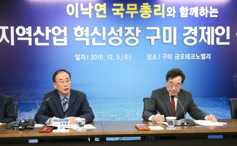 구미시(시장 장세용)는 5일 오전, 금오테크노밸리 IT의료융합기술센터 회의실에서 이낙연 국무총리 주재로 지역산업 혁신성장을 위한 ‘구미지역 경제인 간담회’를 개최했다.