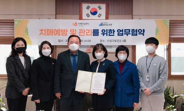 대구 수성구보건소 치매안심센터는 지난 23일 수성구보건소에서 수성구립 범어도서관과 치매관리사업 개발과 치매예방 및 관리를 위한 업무협약을 체결했다.