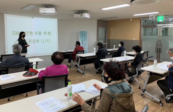 또한, 코로나19로 인한 언택트 시대에 맞춰 스마트 기기에 취약한 지역 어르신들을 위해 스마트폰 기초 및 활용법 강좌를 중점 기획하였고, 수업시간 외에도 학습 내용을 일상생활에서 활용하고 가정에서 지속적인 인지자극 활동을 할 수 있도록 주차별 다양한 학습과제를 제공한다.
