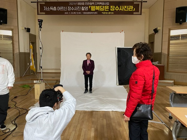 행복담은 장수사진관 촬영은 비용이 부담되어 장수사진을 준비하지 못한 영양 관내 저소득층 어르신들을 대상으로 이준경 스튜디오에서 재능기부로 무료 장수사진을 찍어드리고 액자도 전달하여 더 뜻깊은 자리가 되었다.