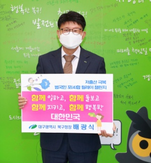 배광식 북구청장은 3월 30일(화) ‘저출산 극복 함께해요!’ 범국민 포(4)함 릴레이 챌린지에 동참했다.
