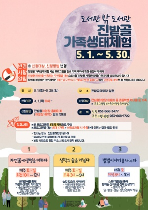 대구 수성구(구청장 김대권)은 5월말까지 범물동 진밭골 야영장 이용객을 대상으로 가족 생태체험 프로그램을 시범 운영한다.