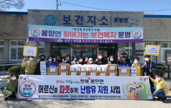 의성군 봉양면 지역사회보장협의체와 찾아가는 보건복지팀에서는 지난 3월 30일 독거노인생활지원사를 통해 관내 취약계층 독거 어르신 8가구에 난방유와 생필품을 지원하였다.