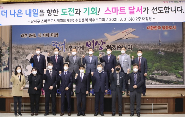 대구 달서구(구청장 이태훈)은 3월 31일 구청 2층 대강당에서 달서구만의 차별화된 추진전략 및 실행기반 마련을 위한 ‘달서구 스마트도시계획(5개년) 수립용역’ 착수보고회를 개최했다.