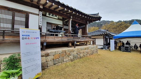 (사)한국문인협회 봉화지부(지부장 하영옥) 주관으로 개최되는 이번 시 낭송회는 `시와 음악과 봄꽃향기`라는 주제로 문인협회 회원, 마을주민 등 70여 명이 참석해 봄기운을 가득 머금은 노란 산수유 꽃을 구경하고, 시 낭송과 음악공연을 즐겼다.