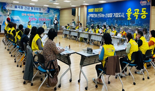 김천시 율곡동(동장 이우문)에서는 4월 6일 통장협의회(회장 우선희) 30명이 참석한 가운데 2021년 4월 통장회의를 개최했다.