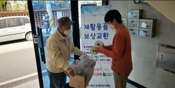 한편, 서구청은 환경보호를 위해 이외에도 폐건전지 10개당 새 건전지 1세트, 종이팩 1kg당 화장지2롤, 폐형광등 10개당 화장지 2롤로 교환하는 사업도 병행하고 있다.