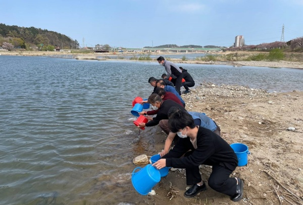 울진군(군수 전찬걸)은 지난 4월 7일 울진군낚시협회 회원과 함께 청정1급수 하천인 근남면 왕피천(수산보, 구산1교 일원)에서 어린 은어를 방류했다.