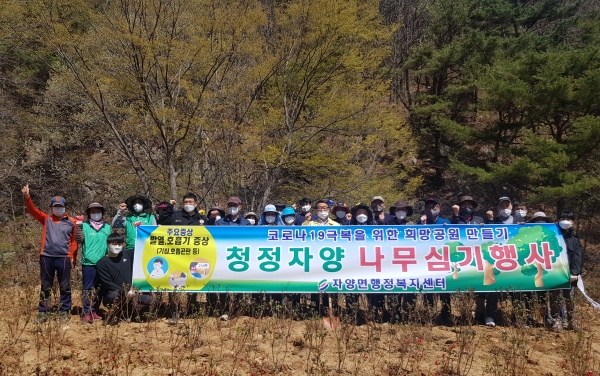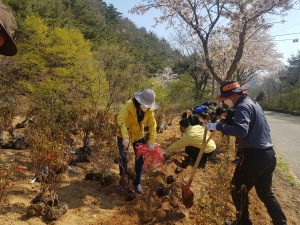 이날 행사에는 자양면 직원과 이장, 새마을 지도자, 새마을부녀회, 농촌지도과장을 비롯한 직원 및 영천시 체류형농업창업지원센터 교육생 등 지역주민 30여 명이 참여하여 영산홍 1,500본을 체류형농업창업지원센터 입구 도로변에 식재하여 나무사랑 분위기를 조성하였다.