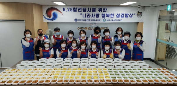 한국자유총연맹 대구북구지회(회장 김문룡)는 4월 8일(목) 6.25참전용사분들을 위한 국과 밑반찬을 만들어 50세대에 전달하였다.