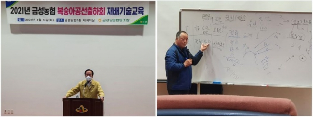 조용일 금성농업협동조합장은 “복숭아 공선출하회 육성을 통하여 고품질 복숭아를 생산하고 유통 할 수 있도록 영농기술교육 지원에 더욱 힘쓰도록 노력하겠다.”고 말했으며, 복숭아 재배 기술교육을 준비한 금성농협 설동근 상무, 장재홍 과장은 짧은 시간이지만 어렵게 마련된 교육인 만큼 좋은 품질로 농가의 경쟁력을 높혔으면 좋겠다고 소감을 밝혔다.