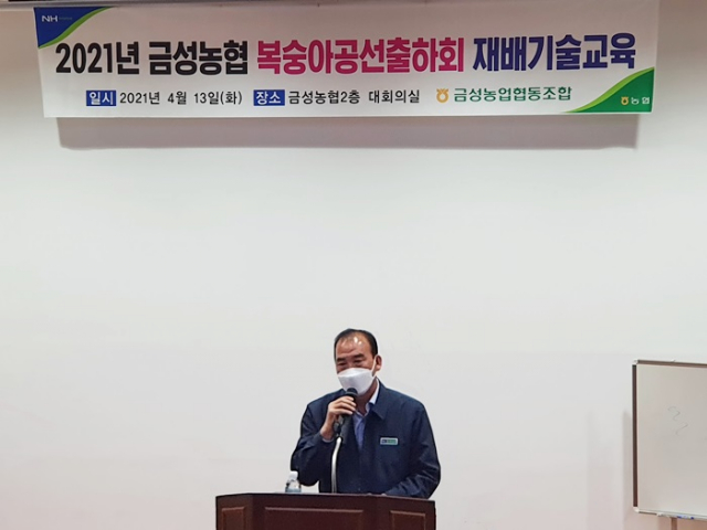 4월13일(화) 경북 의성에 위치한 조문국박물관 강당에서 금성농업협동조합(조합장 조용일) 주관으로 복숭아 공선출하회(회장 반성수) 회원을 대상으로 재배기술, 복숭아나무 키우기 등 영농기술교육을 오전, 오후 2회에 나누어 실시하였다.