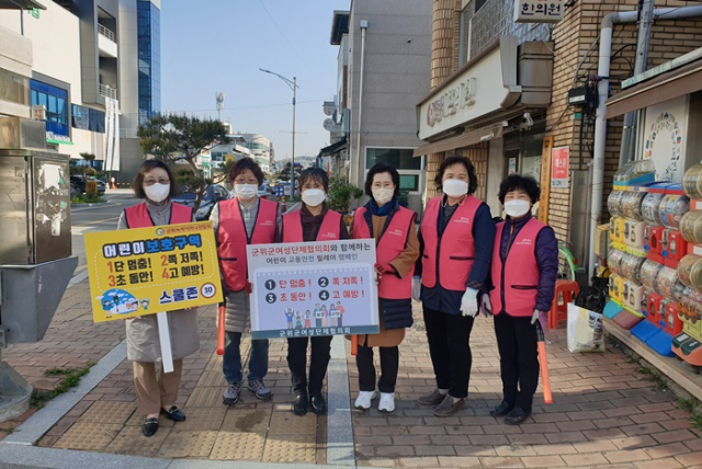 군위군여성단체협의회(회장 송곡지)는 지난 9일부터 14일까지 4일에 걸쳐 군위 초등학교 인근에서 등교시간 동안 어린이보호구역 내 교통사고 예방과 교통안전문화 정착을 위해 ‘어린이 교통안전 릴레이 챌린지’ 캠페인을 펼쳤다.