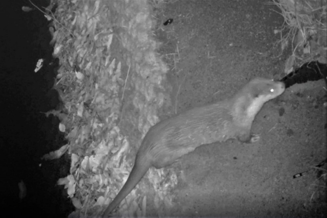 | ↑↑ 달서구 도원지 수달섬에 나타난 수달 (CCTV에 포착된 모습) |