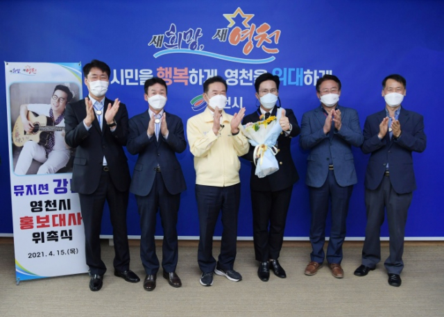 영천시(시장 최기문)는 시의 브랜드 마케팅 강화를 위해 지난 4월 15일 시장실에서 트로트 가수 강민을 영천시 홍보대사로 재위촉하고 위촉장을 수여했다.