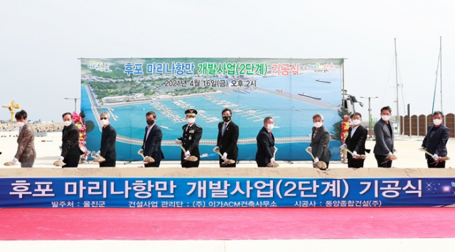 울진군(군수 전찬걸)은 4월 16일 후포 마리나항만 일원에서 도·군의원, 기관단체장 등이 참석한 가운데 후포 마리나항만 개발사업 2단계 공사 기공식을 개최했다.