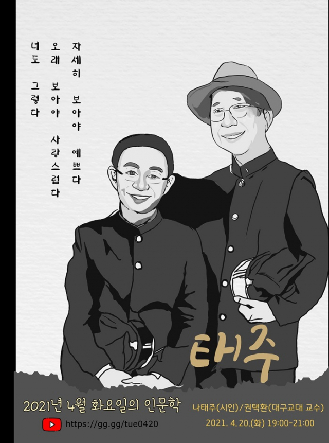 1부는 나태주 시인의 강연으로, 2부는 대구교대 권택환 교수와의 대담으로 진행된다.
