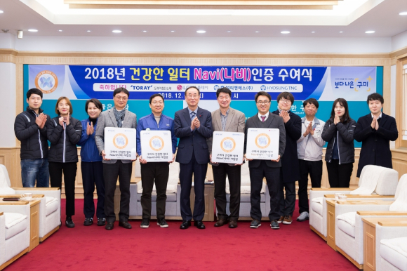 구미시(시장 장세용)는 6일 구미시청 통상협력실에서 2018년 건강한 일터 인증식을 개최했다.