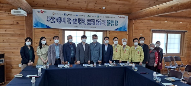 문경시는 4월 21일 농암면 농촌체험휴양마을인 궁터 별무리마을에서 경상북도와 주식회사 푸드나무, 사단법인 경북농촌체험휴양마을협의회를 대상으로 기업과 농촌의 혁신적인 상생모델 발굴을 위한 업무협약을 체결했다.