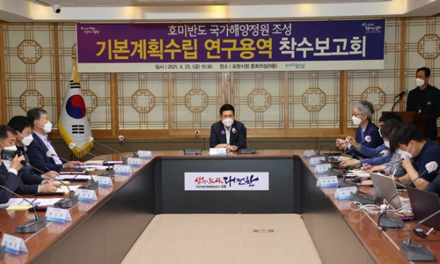 포항시가 천혜의 아름다운 경치를 간직한 호미반도 일원을 국가해양정원으로 조성하는 사업의 첫 발을 내디뎠다. 포항시 해양산업과는 23일 ‘호미반도 국가해양정원 조성 기본계획수립 연구용역’ 착수보고회를 개최했다.