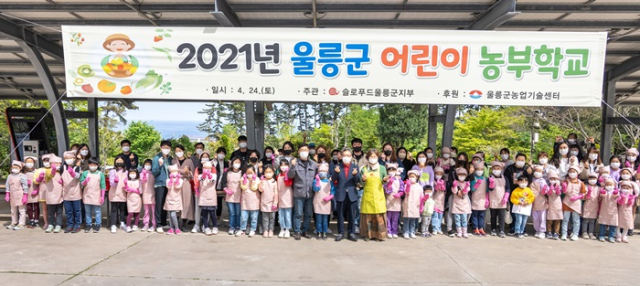 울릉군은 4월 24일 울릉군농업기술센터 광장에서 2021년 슬로푸드 어린이 농부학교 우산고로쇠 된장, 간장 만들기 체험행사를 개최했다.