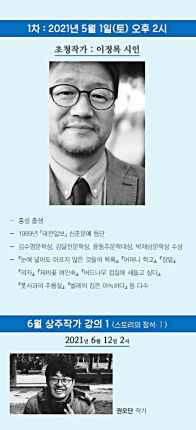 이번 행사를 통해 일반 시민에게 문학에 대한 관심과 흥미를 전하게 될 강좌는 1988년 《대전일보》 신춘문예로 등단하여 『눈에 넣어도 아프지 않은 것들의 목록』, 『어머니 학교』, 『정말』, 『벌레의 집은 아늑하다』 등 수많은 베스트셀러를 낸 ‘이정록 작가’의 초청강연이 진행된다.