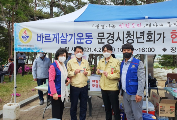 바르게살기운동 문경시청년회(회장 박중석)는 4월 27일 10시부터 16시까지 문경시의회 전정에서 대한적십자사와 연계하여 헌혈버스를 통해 ‘생명나눔, 헌혈문화’ 행사를 전개했다.