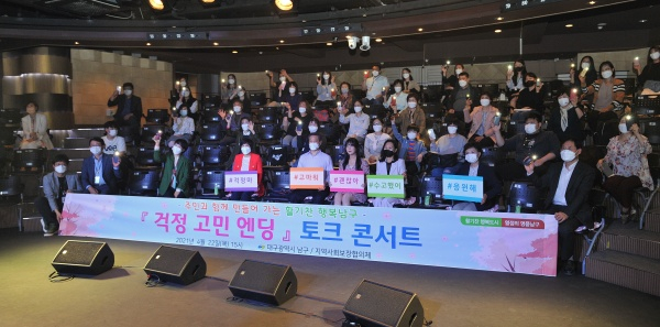 대구광역시 남구청(구청장 조재구)은 지난 22일 주민과 함께 만들어가는 『걱정 고민 엔딩』 토크콘서트를 개최하였다.
