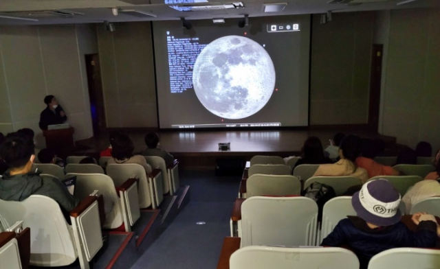 ‘과학의 달에 만나는 슈퍼문’이라는 타이틀로 진행하는 이번 행사는 먼저 강당에서 천문 프로그램을 활용하여 슈퍼문과 당일 밤 볼 수 있는 별자리에 대해 자세히 설명했다. 그리고 회전하는 그림의 잔상을 사용한 조트로프 만들기와 달 배지 만들기를 통해 달의 위상 변화를 배워보는 천체 공작 체험 시간도 가졌다.