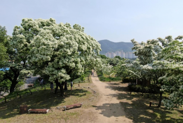 대구시 달성군 옥포읍 교항리에 위치한 이팝나무 군락지에 하얀 눈꽃이 펴 만개를 눈앞에 두고 있다.