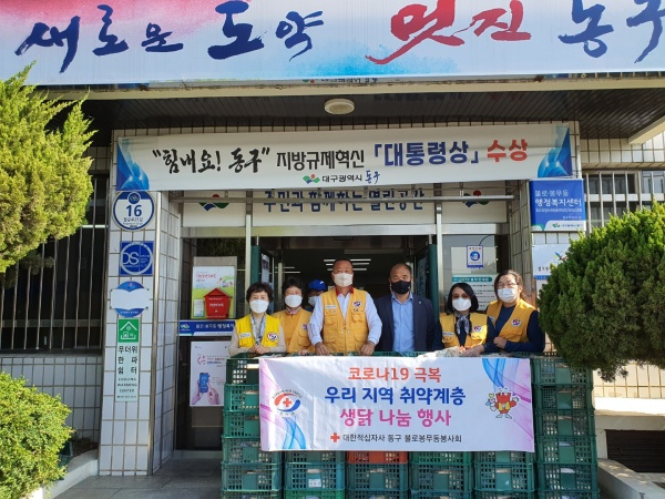 대구 동구청(구청장 배기철)은 불로봉무동 적십자 봉사회(회장 최종학)에서 코로나19로 어려움을 겪고 있는 저소득 주민들을 위해 생닭 300마리를 불로봉무동행정복지센터에 전달했다고 4일 밝혔다.