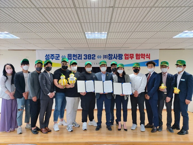 이날 성주군은 대구·경북지역 프랜차이즈 카페인 읍천리 382(대표 전재목, 최보규)와도 업무 협약을 체결하여 성주참외 음료 가공 사업에 박차를 가하고 있다.