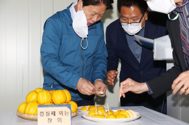 성주군은 5월 7일 기능성 베타카로틴 참외 평가회를 개최하였다.