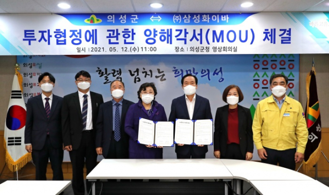 의성군은 5월 12일 의성군청 영상회의실에서 김주수 군수와 ㈜삼성화이바 진영숙 대표 등이 참석한 가운데 ㈜삼성화이바와 본사 이전 및 제조라인 증설에 관한 MOU(투자양해각서)를 체결했다.