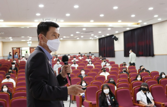 이강덕 포항시장은 5월 13일 포항해양과학고등학교에서 교직원들과 학생 60여 명이 참석한 가운데 ‘여러분이 포항의 미래입니다’를 주제로 특강을 진행했다.