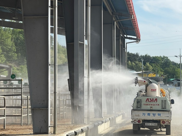 또한, 평소 축산차량이 빈번하게 출입하고 지역 거점 우시장으로서 역할을 하고 있는 김천전자경매가축시장은 연평균 10,500두에 9,000명이 다녀가는 시설로 지역전파가 우려되는 시기 이번 일제소독 및 환경정비 완료 후 코로나19 발생이 안정화 될 때까지 잠정휴장하기로 결정했다.
