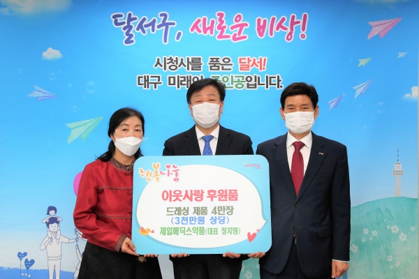 이태훈 달서구청장은 “코로나19의 장기화로 모두가 힘든 시기에 이웃을 위한 마음에 감사드리며, 나눔이 넘치는 따뜻한 사회를 만드는데 최선을 다하겠다”고 전했다.