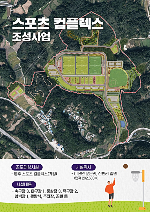 한편 스포츠 컴플렉스(가칭)는 이산면 운문리, 신천리 일원에 조성되는 29만㎡의 체육공원으로서 각종 야외체육시설과 산책로, 공원 등으로 구성돼 있으며 2024년 준공될 예정이다.