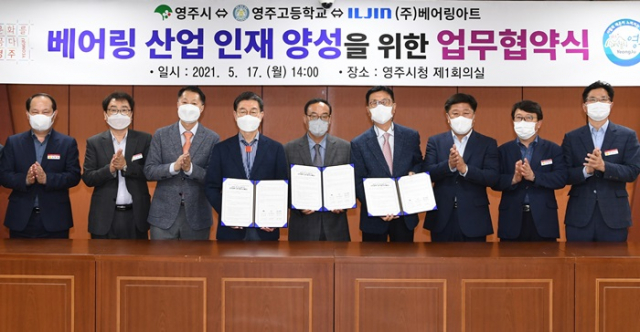 경북 영주시(시장 장욱현)는 5월 17일 시청 제1회의실에서 영주고등학교(교장 서중각), ㈜베어링아트(대표 송영수)와 베어링 산업 인재 양성을 위한 업무협약(MOU)을 체결했다.