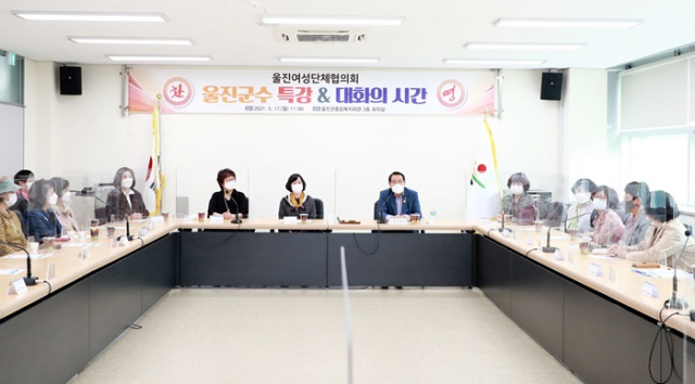 울진군(군수 전찬걸)은 지난 5월 17일 울진여성단체협의회(회장 박명희) 정기회의 자리에서 여성협회 회원들과 함께 하는 울진군수 특강 및 대화의 시간을 가졌다.