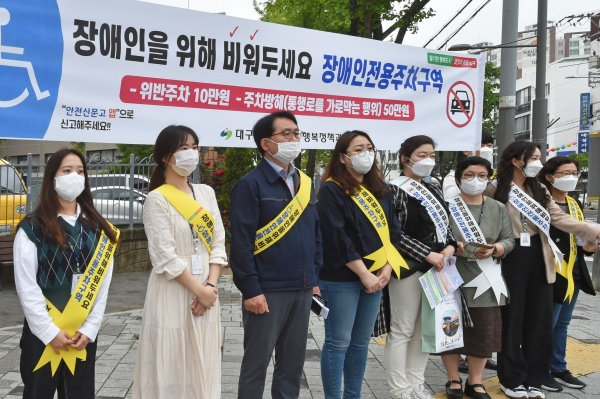 대구광역시 남구청(구청장 조재구)은 지난 18일, 남구청네거리에서 장애인전용주차구역의 올바른 주차문화 정착을 위해 『장애인을 위해 비워 두세요 캠페인』을 펼쳤다.