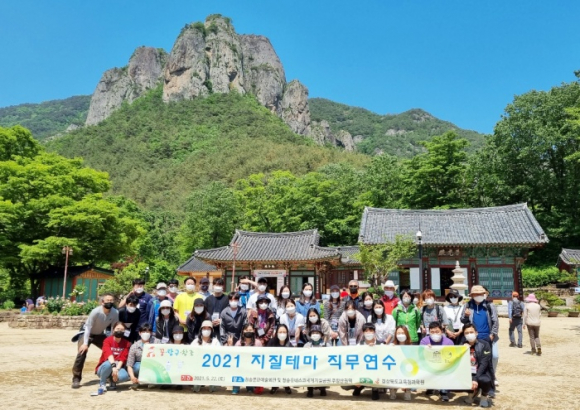 청송군(군수 윤경희)이 경상북도교육청과학원과 함께 초등교사 및 중등 과학교사를 대상으로 지난 5월 22일(토) 청송 유네스코 세계지질공원 일원에서 ‘2021 지질테마 직무연수’를 실시했다.