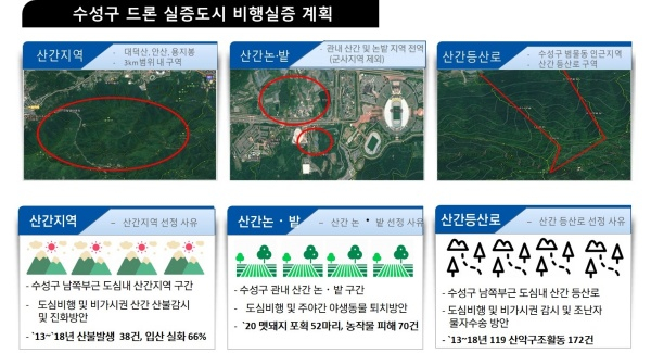 | ↑↑ 수성구 드론 실증도시 비행실증 계획 |